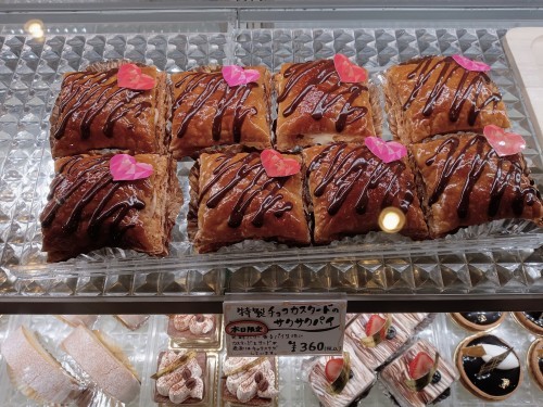 皆さんこんにちは!パティスリールナンジュです。 本日限定の商品のご紹介です。 『 特製チョコカスタードのサクサクパイ 』 土日限定のサクサクパイを、バレンタイン仕様に! ルナンジュ特製カスタードとチョコ生クリームを合わせたクリームを、サクサクのパイにサンドし、上からガナッシュをかけました 軽い食感でおやつにぴったり✨️ 個数に限りがございますので、お求めの方はお早めのご来店をお待ちしております。 皆様のご来店、心よりお待ちしております。 パティスリー ルナンジュ 住所 〒856-0027 長崎県大村市植松 3-780-5 TEL 0957-42-3300 営業時間 10:00〜19:00 店休日 火曜日 アクセス JR竹松駅から車で7分 当店facebookページはこちら http://bit.ly/28LxPll