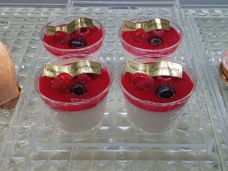 なめらかなミルクプリンの上に、シェフ特製のベリーソースをたっぷりかけました💖