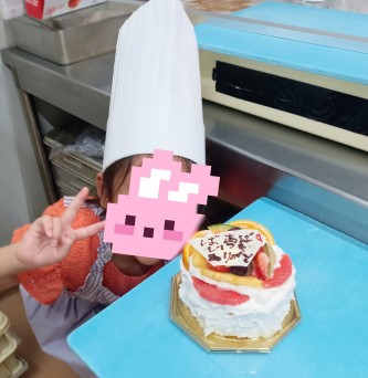 作成したデコレーションケーキはおばあちゃんへのプレゼントだそうです✨️
